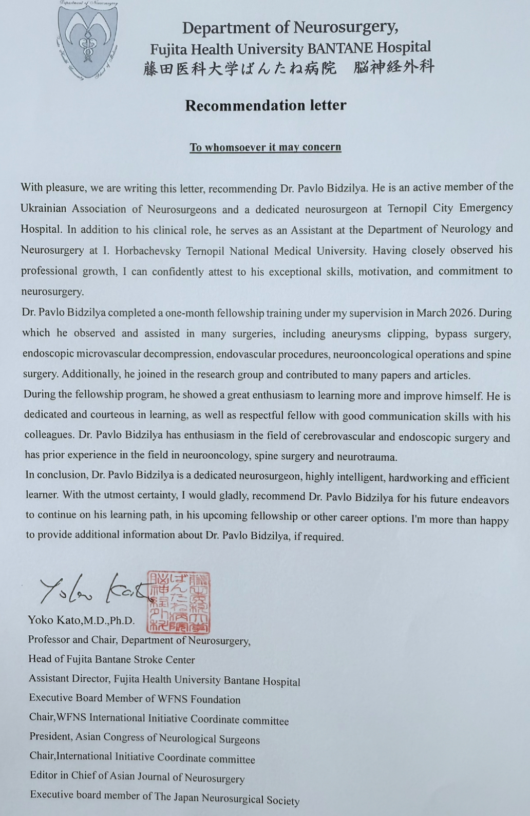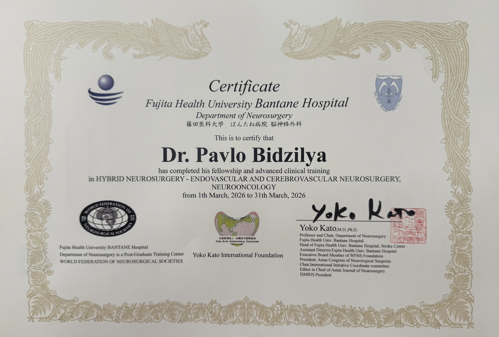 - Член Української асоціації нейрохірургів